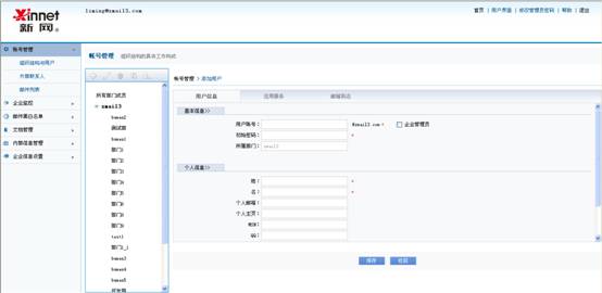 完成相关信息填写后,点击“保存”系统将按照您填入的信息新增一个用户。