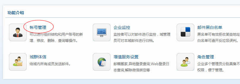 7.选择功能:用户可以使用的邮箱增值功能。勾选中表示该用户可以使用该功能。
