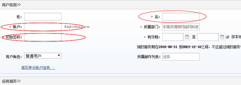 1.账号、名,初始密码,是必填项。(只要填写这3项,注意大小写要区分混合才能保存)